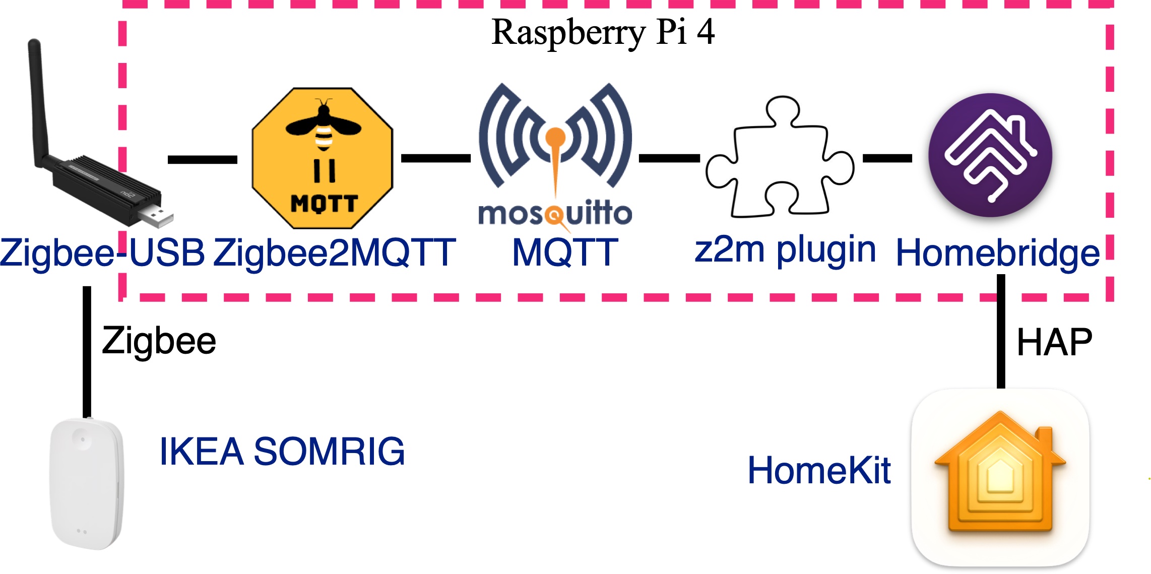 そこで今回も、純正ハブは使わないで、いつものようにZigbee2MQTTを使います。構成は以下です。